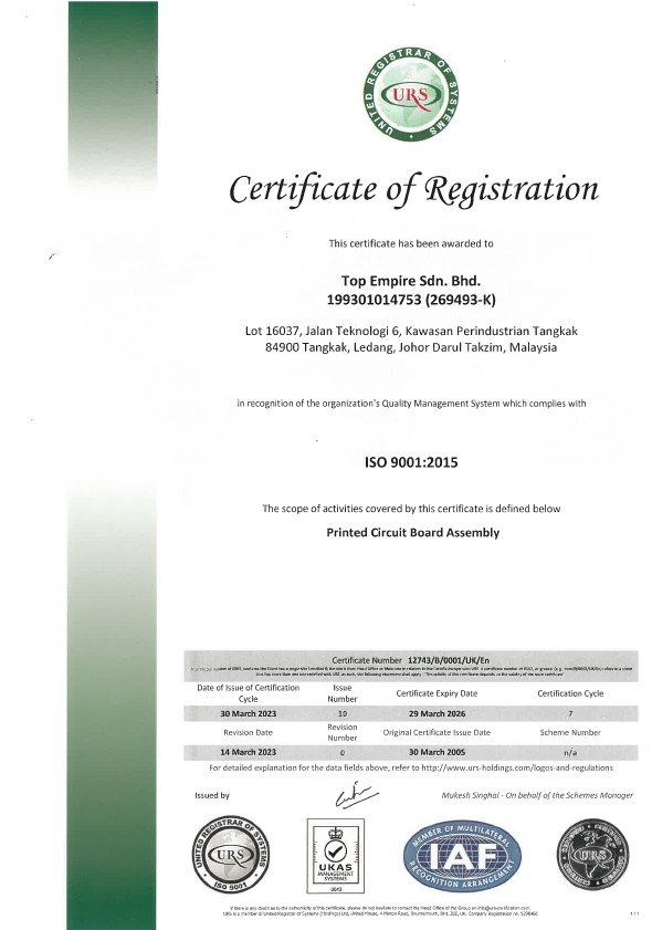 Established in year 1993 and started operation in January 1994. Today, Top Empire Sdn. Bhd. is a leading company in contract manufacturing of printed circuit board assemblies complete surface mount and through hole & manual line. Our product range from dvd, dvc, video player, tv, telecommunications and computer products.We strive to provide excellent services, customer satisfactories with quality products and on time delivery. We are committed to provide consistent quality products as per customer’s requirement and satisfactions.